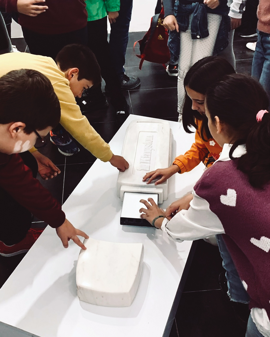 Mármol blanco portugués, mármol negro Marquina y acero inoxidable
